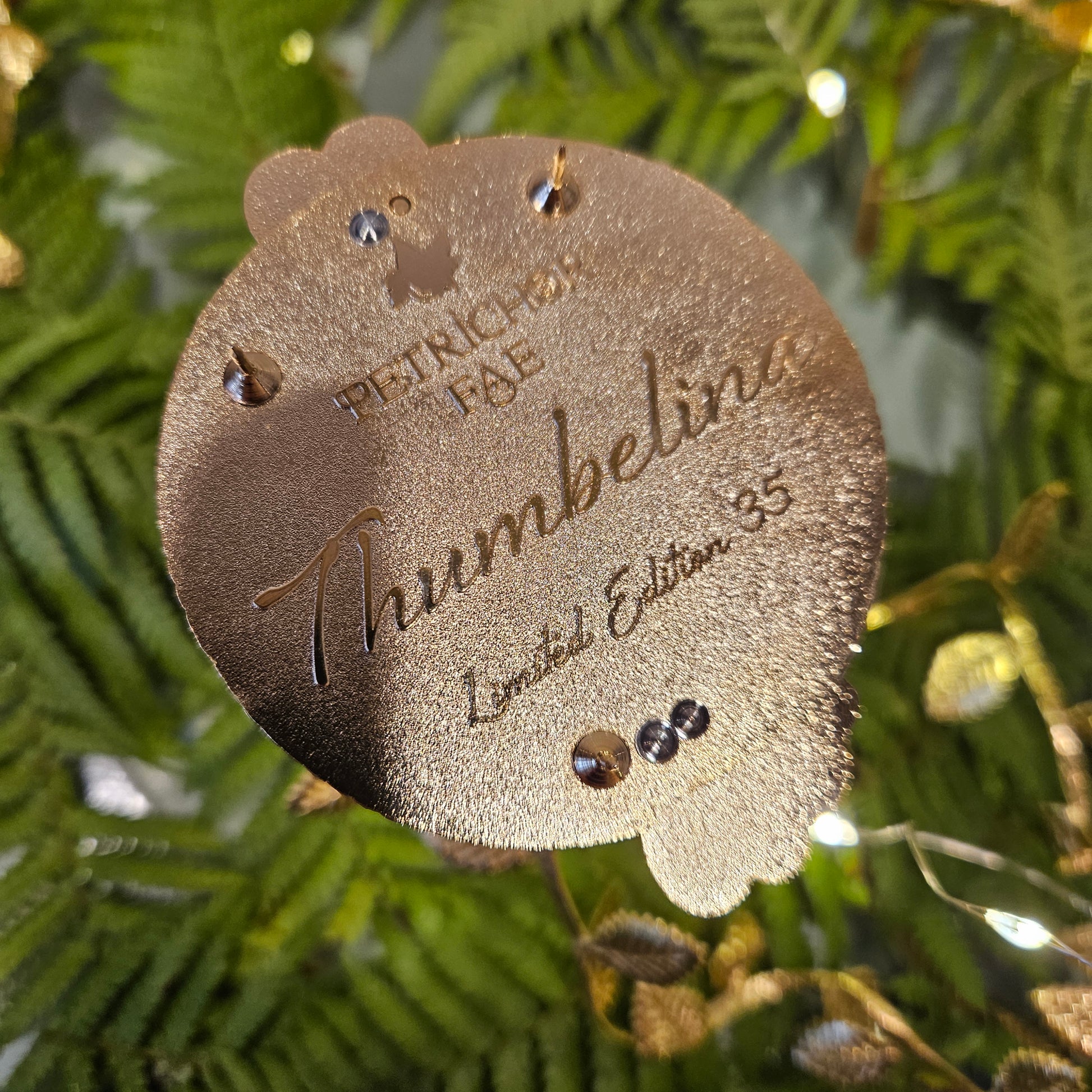 - Fairy: 3.5 inches, pin-on-pin, gold plated, pearl shimmer gradient, glitter, LE35