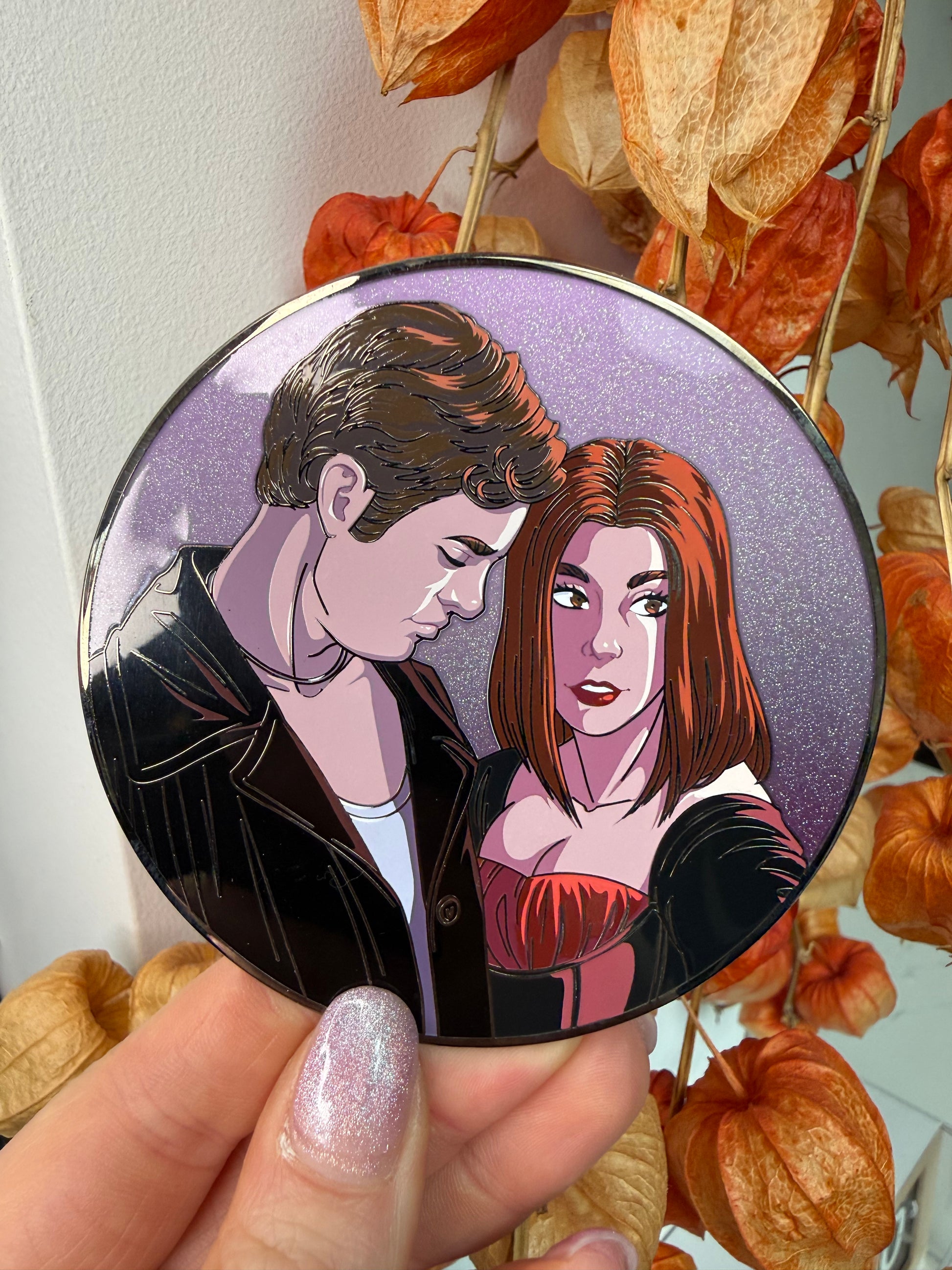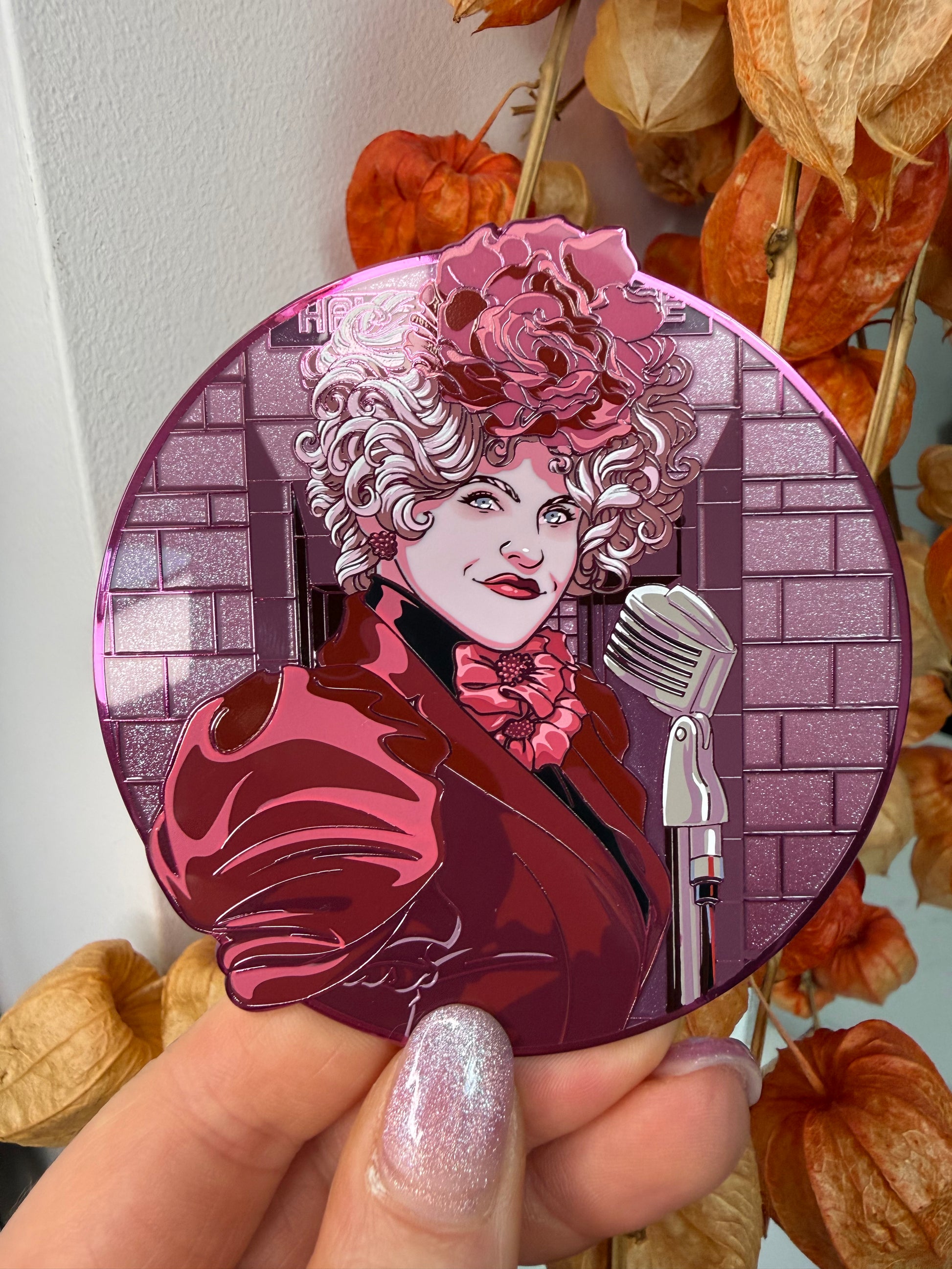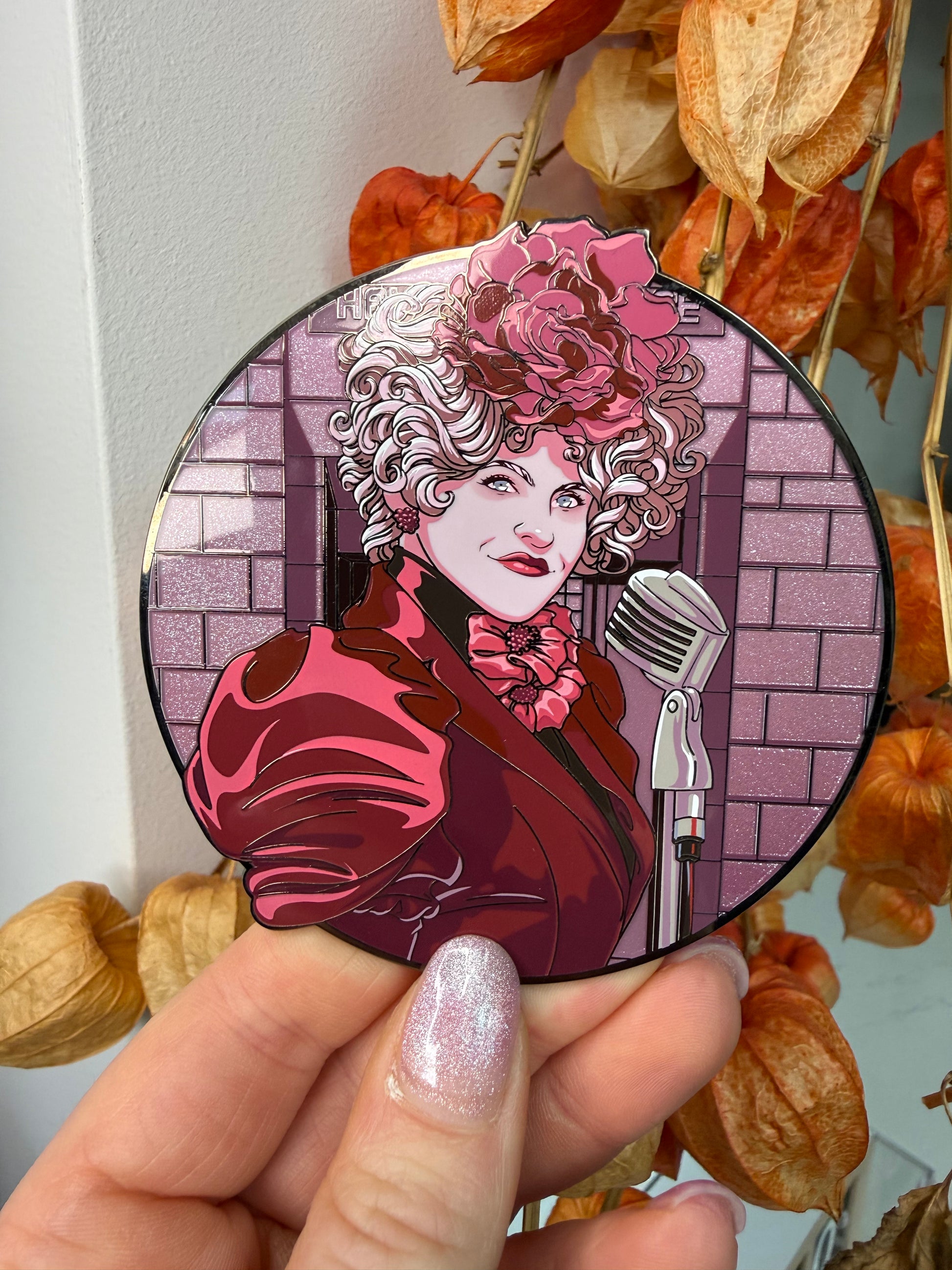 - Iabyrinth Book: 4.5 inch Pin-on-Pin, gold plated, pearl shimmer gradient, glitter. LE 50